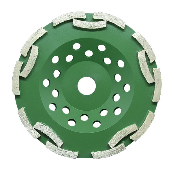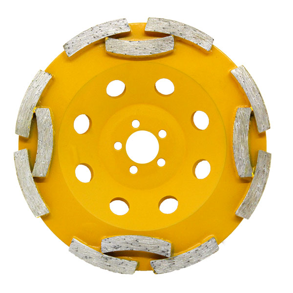 Platorelli diamantati “grandi prestazioni” per levigatrici manuali, con doppia corona diamantata composta da settori dimensioni 40x8x6mm che permettono una lavorazione moderatamente aggressiva della superficie. Proponiamo due leganti standard 16/24, con colorazione verde per cemento molto duro e colorazione gialla per piastrelle e resine.