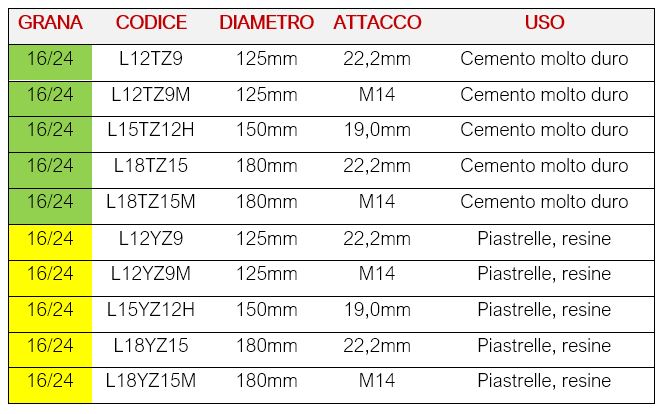 Essendo noi stessi i produttori dei settori diamantati, siamo in grado di fornire altre tipologie di grane e leganti a seconda delle esigenze del cliente. Il corpo dei platorelli è disponibile in diversi diametri con attacco M14, foro 22,2mm o 19mm per macchine HILTI.